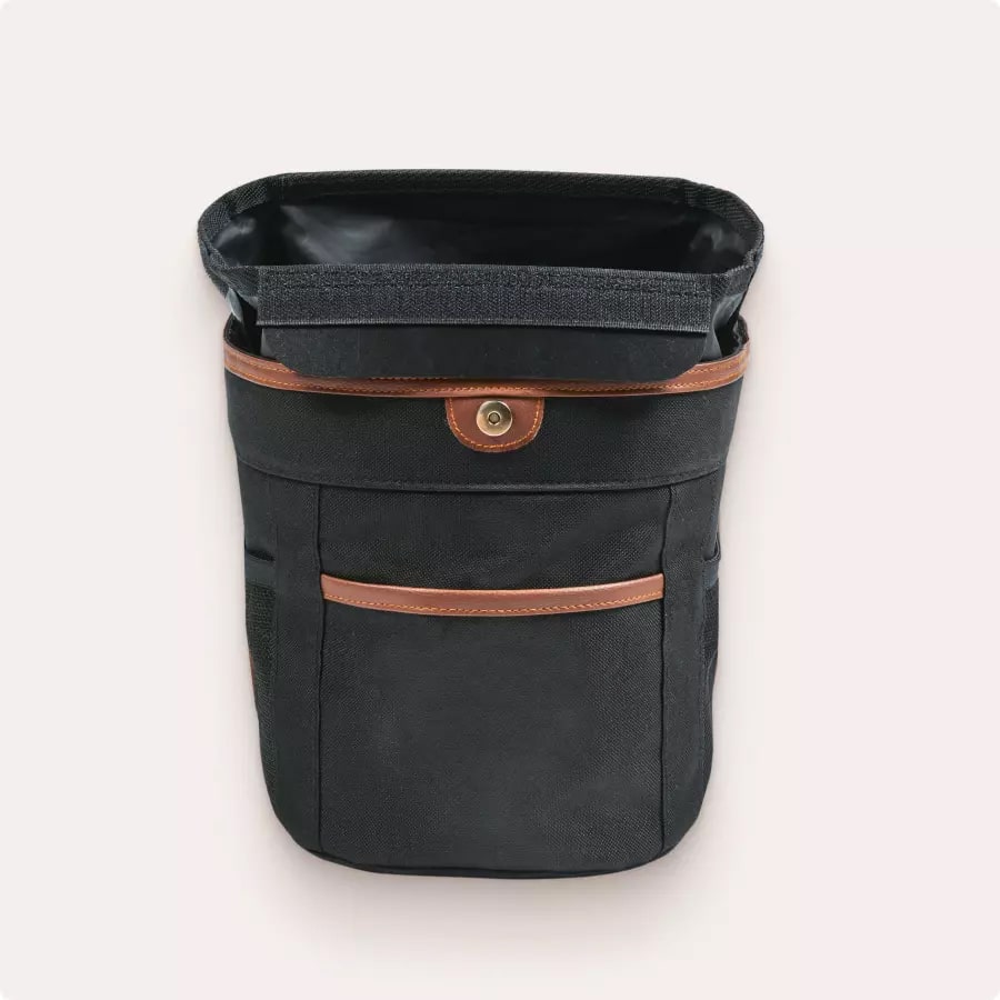 • High-Quality Materials: Made from durable 600D Oxford fabric and eco-leather with a magnetic lid and soft silicone trash hole, it’s sturdy, stylish, and safe for everyone.