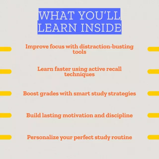 This isn't just another generic set of study tips online but a well-structured, actionable guide that delivers fast results. It's perfect for busy learners needing motivation!