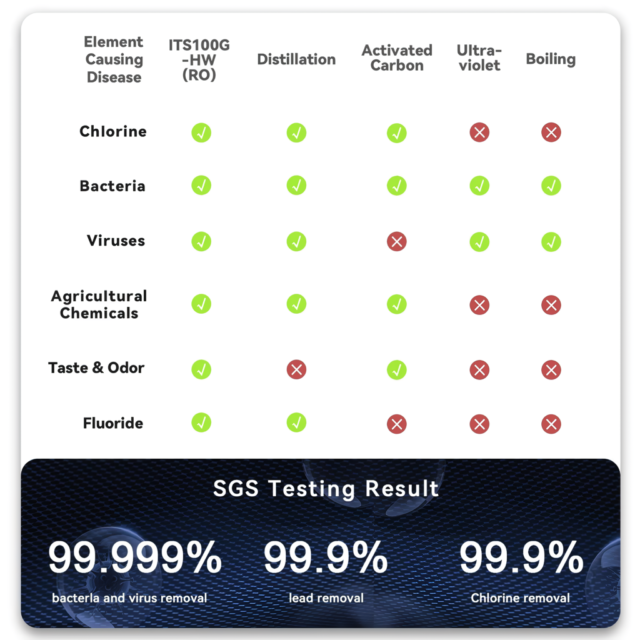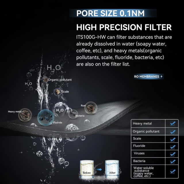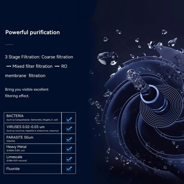This purifier is not just about providing clean water; it’s about offering peace of mind. The self-cleaning feature minimizes maintenance, while its energy-efficient design makes it eco-friendly. While it’s currently in the process of acquiring NSF58/CE/FCC/ROHS/PSE certifications, its existing specifications promise a product of the highest safety and quality standards.