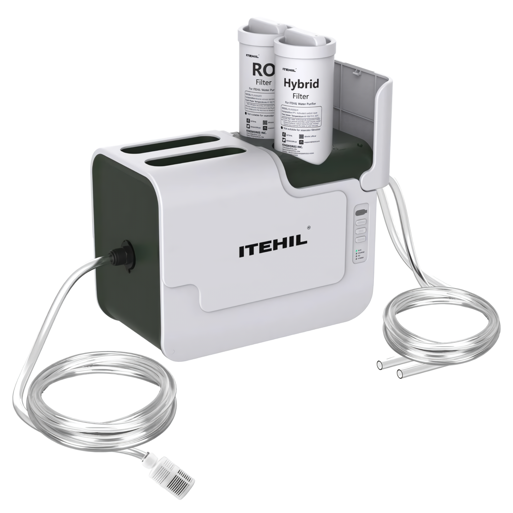 This reverse osmosis system is seriously good. It filters super tiny particles, making the water incredibly clean. It's also really light and easy to take with you wherever you go. I really liked how you can just turn it on to get rid of extra water, and the pre-filter on the hose is great for catching bigger stuff before it even gets inside. The water tastes amazingly clean, probably the best I've ever had outdoors. Plus, there's no need to pump manually, which is a huge plus. It comes with two hoses, so you can use one for drinking water and the other for things like washing up, which is really efficient. The downside is the instructions could be clearer. It's a bit confusing how long the filters last and why there are different buttons for RO and Hybrid filtering. Putting the RO filter in was really tough, too. But honestly, these issues don't really spoil the overall experience. Despite the unclear manual, setting it up is pretty straightforward—just hook up the hoses, hit the power, and you're good to go.