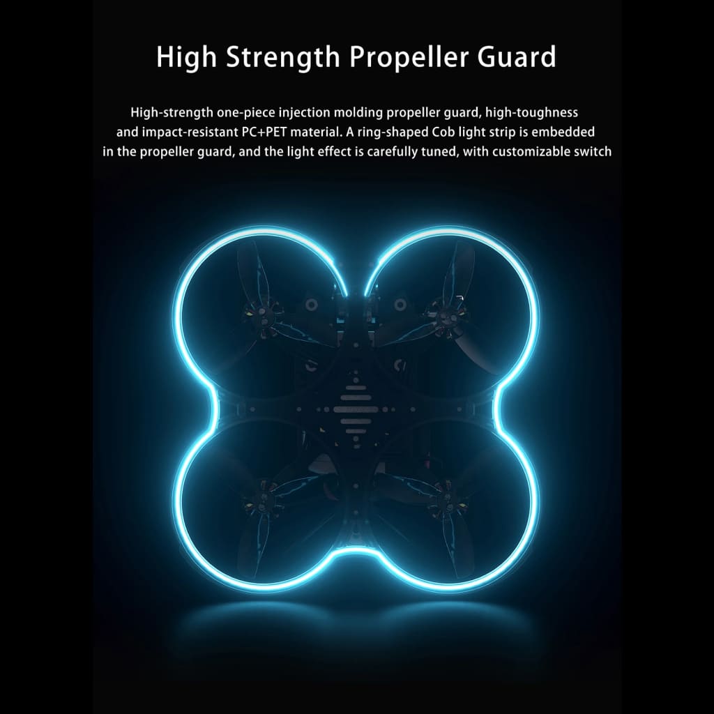 The advanced TPU shock absorption takes this confidence a step further, ensuring that the drone's performance is not just about resilience but also about precision. It's this combination of toughness and technological finesse that allows for stable and clear imaging, even when the drone dances on the edge of high-speed maneuvers or braves the gusty winds that would send lesser drones tumbling from the sky. The addition of the Cob light strip is not just a practical feature for visibility; it's a statement, a flare in the night that transforms the drone into a spectacle of light and motion.