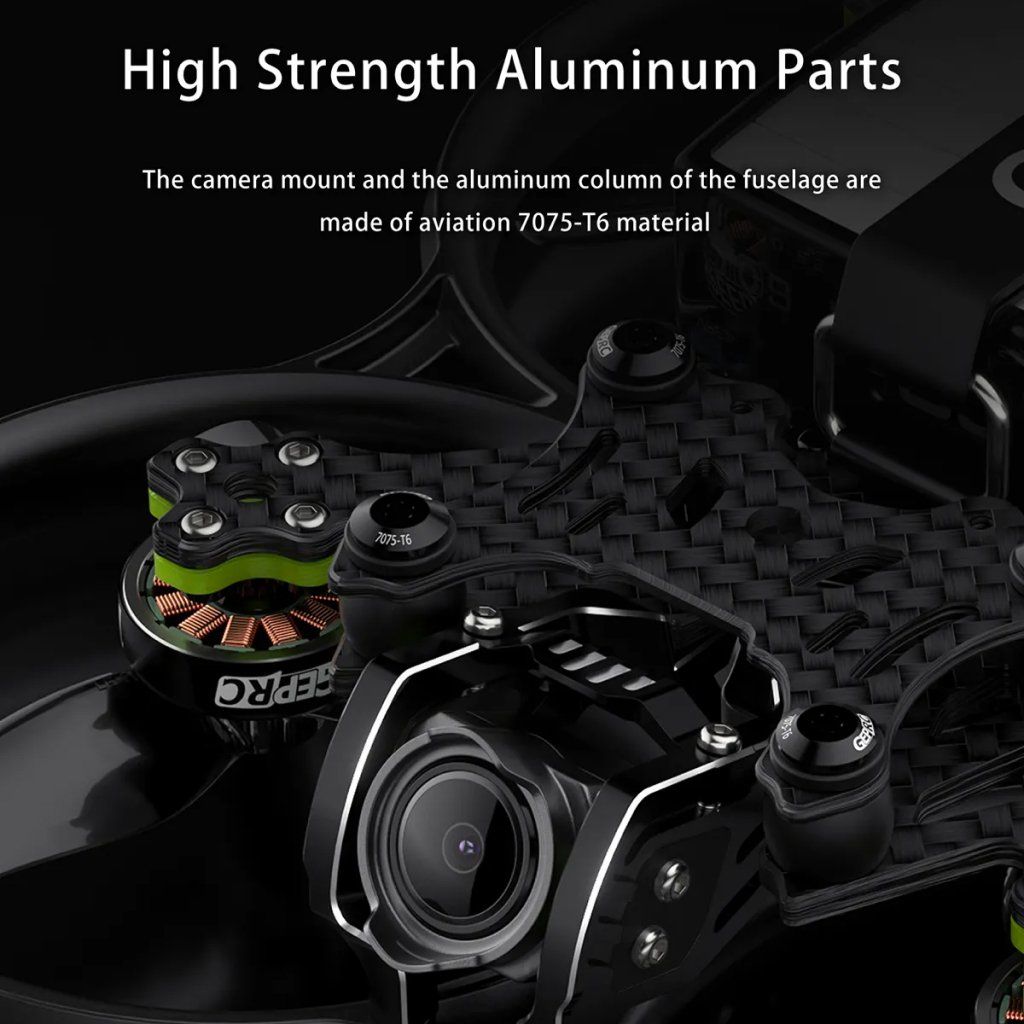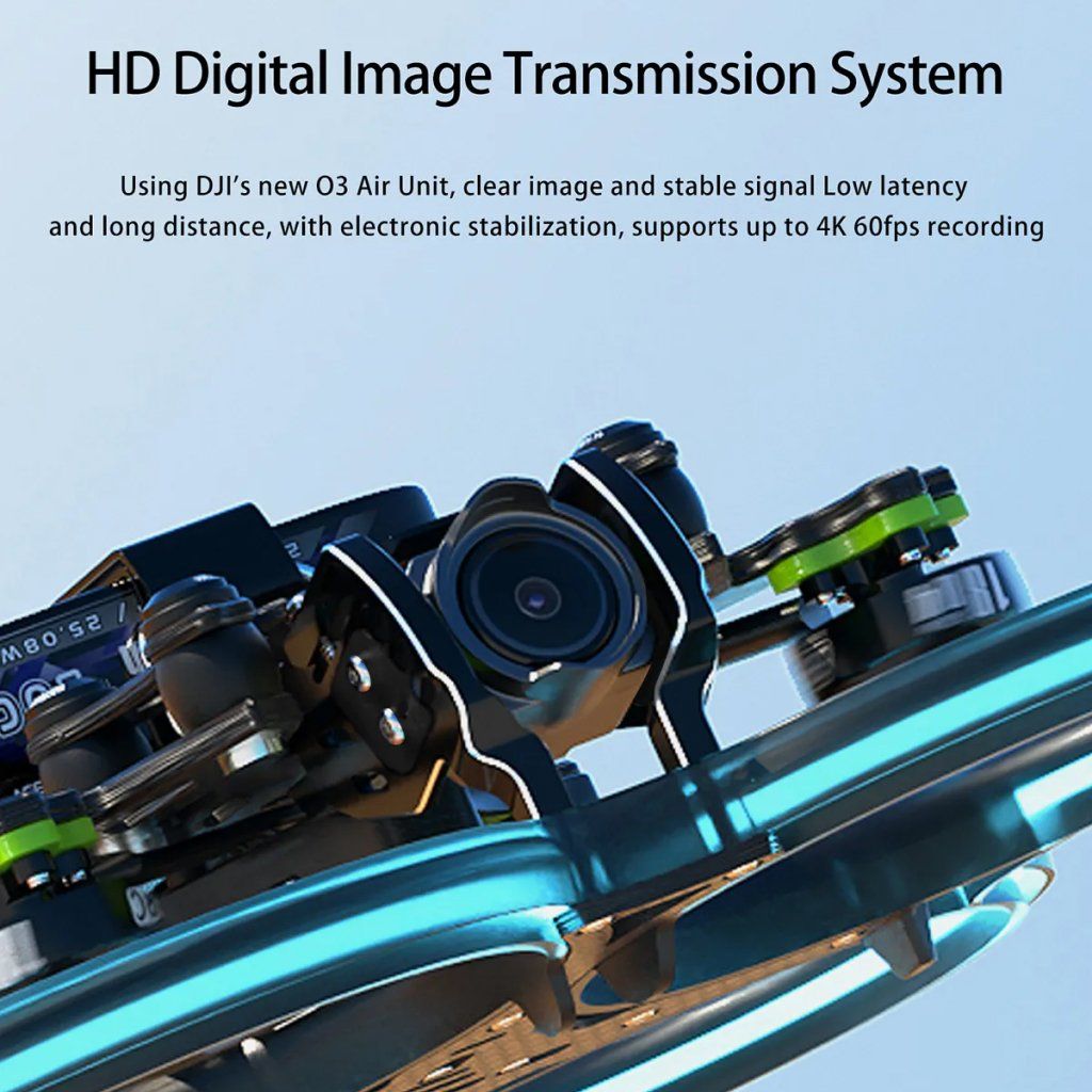 The heart of this drone lies in its O3 Air Unit, the most advanced FPV system currently available. With the capability to transmit real-time 1080P 60fps images and record up to 4K 60fps videos, the quality of your footage is unparalleled. The drone’s high-strength 7075 aircraft-grade aluminum alloy camera parts, coupled with a TPU shock-absorbing pad, ensure jelly-free, high-definition images even during high-speed flights. Furthermore, its meticulously designed video transmission system allows for a seamless and integrated setup within the fuselage.