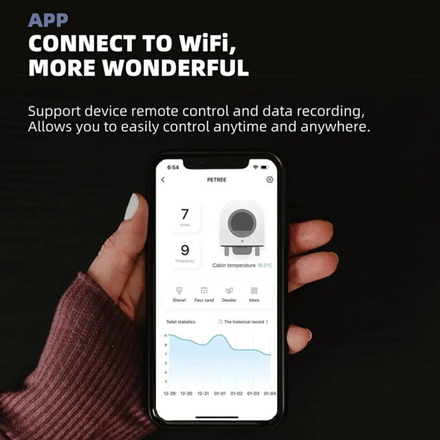 This smart litter box is ideal for busy or travel-loving pet owners who want to ensure their cats’ comfort and hygiene remotely. It’s also perfect for those seeking an environmentally responsible solution to cat waste management.